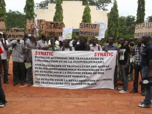 A l’appel du Syndicat autonome des travailleurs de l’information et de la culture(SYNATIC), des dizaines de travailleurs des médias publics ont observé ce mardi matin un sit-in, devant le gouvernorat des Hauts-Bassins, à Bobo.