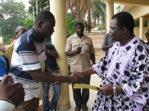A dix heures moins le quart, le Gouverneur, le Haut-commissaire et d’autres autorités locales ont fait leur apparition, sous l’auvent du gouvernorat. Le message du SYNATIC Bobo, a été alors lu par Mahamadi TIEGNAN, membre du Syndicat.