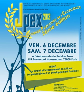 Fort de la réussite de la première édition de la Journée Parcours Excellence (Jpex), les membres de l’Association des cadres et cadres en devenir burkinabè (LACEB)tiennent la deuxième édition les 6 et 7 décembre 2013.