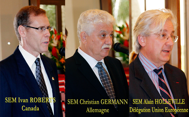 Son Excellence Monsieur Ivan ROBERTS, ambassadeur extraordinaire et plénipotentiaire de la Fédération du Canada auprès du Burkina, avec résidence à Ouagadougou, a été le premier à honorer le cérémonial. Economiste de formation, Monsieur ROBERTS était Directeur-Programme à l’ambassade de son pays au Sénégal de 2008 à nos jours. Il a occupé auparavant de nombreuses fonctions dont le poste de Gestionnaire d’aide ou de Programme dans plusieurs pays comme la Guinée, le Nigéria ou le Pérou.