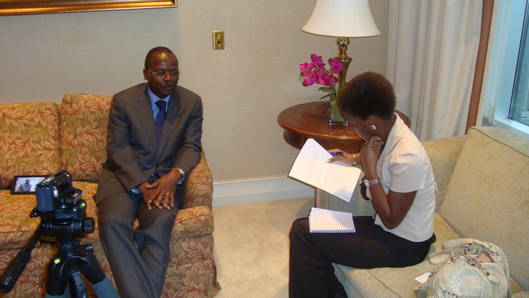 Salif L. Kaboré : Merci. Nous sommes venus à Toronto pour participer au Forum Économique International des Amériques, qui est une tribune qui nous permet de faire la promotion de notre pays. J’ai eu l’opportunité de faire une présentation sur l’état du secteur minier et des opportunités qui s’offrent aux investisseurs. Comme vous le savez, le Canada investit beaucoup dans le secteur minier du Burkina Faso. Cependant, avec les troubles de Mars, Avril et Mai, les compagnies se posent beaucoup de questions sur leurs investissements au Burkina Faso. J’ai donc voulu profiter de ce forum pour faire passer un message rassurant, et dire que la sérénité et la paix sont revenues et que par conséquent les investisseurs peuvent venir en toute tranquillité dans notre pays, qui est un pays sécurisé, un pays démocratique.