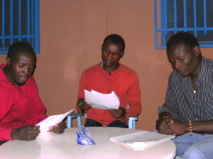 Samedi 19 novembre, il est 19h05 mn quand les lecteurs, Badou, Noël et Urbain se lancent, devant un parterre d’invités, dans la lecture du texte autour duquel des discussions vont bientôt naître. Il s’agit de la pièce de théâtre Bureau N°7 co-écrite par Marcel COMPAORE et Boukary TARNAGDA. Le texte nous expose deux individus, travaillant dans un bureau quelconque, aux prises avec leur quotidien. L’un, amateur des expressions artistiques, l’autre, adepte des meetings de son parti. Tous sont liés par le même cordon : la fonction publique, lieu où ils semblent vivre un mal-être. Malgré eux, il faut être au bureau le matin, et n’en sortir que lorsque midi sonne. Il naîtra donc un conflit qui opposera ces deux individus pris dans le même piège.