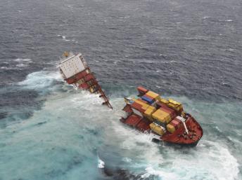 Il y a environ trois mois, le navire porte-conteneurs « Rena » échouait dans un récif au nord de la Nouvelle-Zélande, dispersant une grande quantité de brut sur les côtes. Ce samedi 7 janvier 2012, l’épave s’est brisée sous l’effet d’une tempête avec des vagues de 6 à 7 mètres de haut.