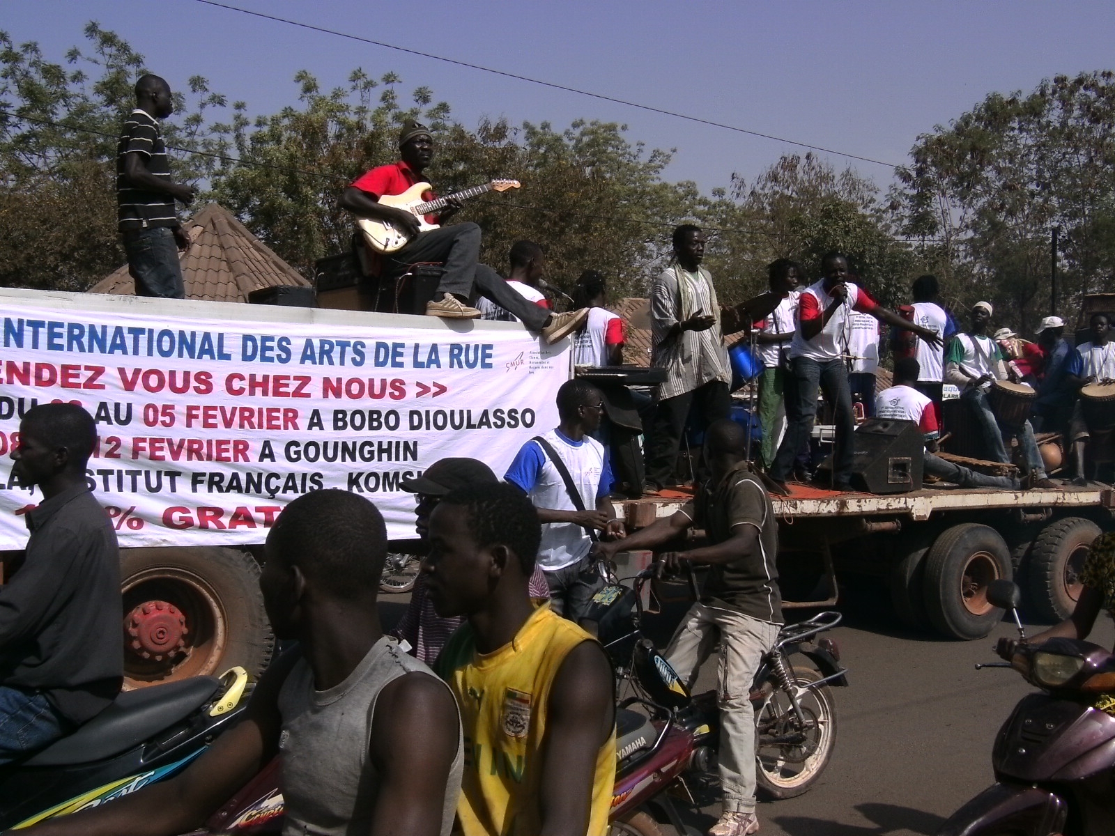 Partie de l’Institut Français de Ouagadougou, une grande foule d’artistes a damé le macadam jusqu’au quartier Gounghin Nord (place de la femme, face au siège de l’association Face ô scéno). Cette parade qui est une tradition a été suivie par l’ensemble de la population. Tout au long du parcours (Institut Français, Place du 02 octobre, Bataille du rail, Pont Kadiogo, Direction Générale des routes, Place de la femme), un grand nombre de passants s’est massé aux abords de la voie. D’autres n’ont pas hésité à se joindre à cette immense procession qui a drainé, en plus des citadins et autres artistes, des festivaliers venus du Niger, du Mali, de la Côte-d’Ivoire, de la France, du Canada, du Bénin, du Maroc, de la Suisse, du Tchad et de la Corée du sud.