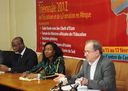 La Triennale 2012 sur l’éducation, organisée par l’Association pour le développement de l’éducation en Afrique (ADEA) en partenariat avec le gouvernement burkinabè, se tient à Ouagadougou du 12 au 17 février 2012. En prélude à cette importante rencontre, un point de presse à été animé ce jeudi matin par le Ministère de l’Éducation et les premiers responsables de l’ADEA, portant sur les préparatifs, les enjeux de ce forum et d’autres questions y relatives.Plus que deux jours et Ouagadougou sera l’hôte du plus important évènement africain sur l’éducation. Un évènement qui verra une convergence de chefs d’États, de ministres de l’éducation de tout le continent, des partenaires aux développements ainsi que des représentants de la société civile, des universitaires et chercheurs, autour de la problématique de l’éducation et de la formation pour le développement durable. Ils seront environ 800 participants, décideurs, experts et acteurs, pour réfléchir, partager et apporter des réponses sur comment l’éducation peut contribuer au développement durable de l’Afrique. Ils seront guidés par un thème central : « Promouvoir les connaissances, compétences et qualifications critiques pour le développement durable de l’Afrique : comment édifier/concevoir une réponse efficace des systèmes d’éducation et de formation ? »