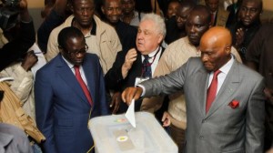 Le candidat Idrissa Seck, maire de Thiès, a voté dans sa ville et a, à la sortie du bureau de vote,  appelé les électeurs à éliminer de fait un des quatorze (14) bulletins, celui qu’ils reconnaitront selon ses dires, et qui est de son avis hors la loi. Il a exprimé aussi sa sérénité quant à l’issue favorable du scrutin au terme duquel il se voit victorieux. Le candidat Macky Sall a quant à lui voté dans la ville de Fatick dont il est Maire. A sa sortie, il a confié aux journalistes son souhait de voir le scrutin se dérouler dans le calme et la sérénité. C’est pourquoi il s’est réjoui du calme constaté mais également de la forte mobilisation. Rappelons que le candidat Macky Sall a toujours défendu la position selon laquelle, le président Wade doit être battu dans les urnes et a  toujours demandé à ses camarades de l’opposition de faire confiance au peuple qui à son avis est suffisamment mature.
