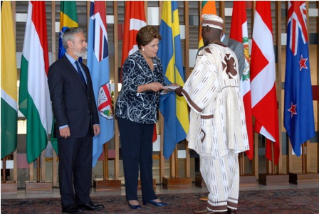 Présentation des Lettres de créance de l’Ambassadeur Alain Ilboudo à la Présidente brésilienne Dilma Rousseff