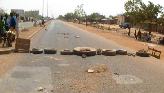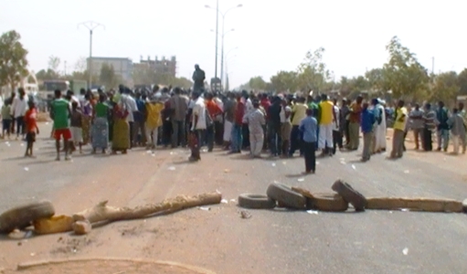 La circulation routière sur le boulevard des Tensoba a connu des troubles en cette journée fériée du 08 mars 2012. En effet, non loin du cimetière de Dagnoen où ils venaient d’inhumer une jeune femme, les jeunes ont bloqué la route avec des pneus, tables, cailloux et autres objets. Dans une forte mobilisation, ils manifestaient leur colère après le décès de la jeune dame, victime d’un accident la nuit du 07 au 08 mars.
