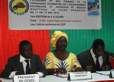 Les 11 et 12 mai se tient au sein de l’université de Ouagadougou un forum sur la Stratégie de Croissance Accélérée et de Développement Durable (SCADD), à l’initiative du Club des Etudiants en Sciences Economiques et de Gestion (CESEG). Une cadre donné aux participants pour scruter au fil des communications les opportunités de ce nouvel instrument du développement du Burkina Faso.