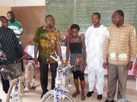 Avec ses brochettes de soja, Christelle BAMA a remporté le premier prix. Elle est suivie de Nadège Bazié qui a proposé du gnongon (beignets de haricots) aux œufs. Elles ont toutes deux reçu des vélos de Madame TIAO.
