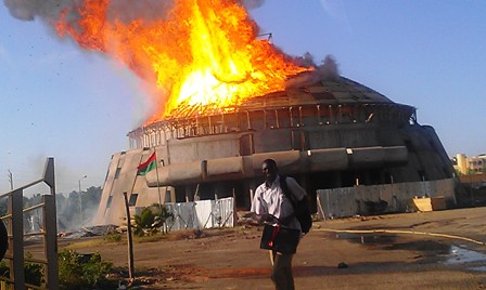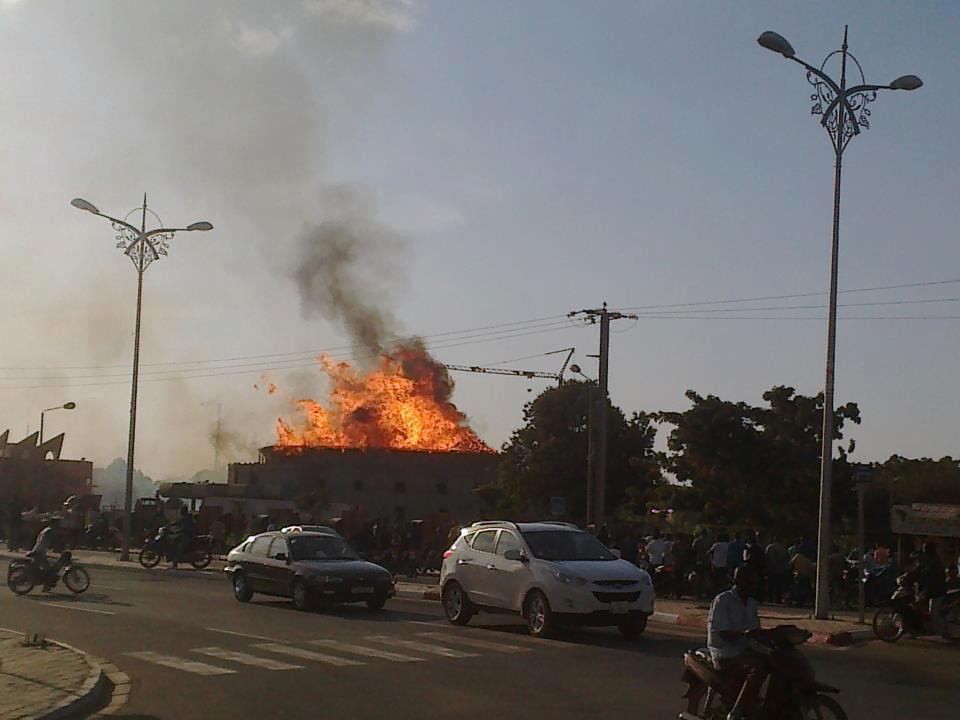 Burkina 24  vient d’apprendre que la salle en construction du FESPACO est en flamme, ce à quelques jours du festival (Ouagadougou du 23 février au 02 mars 2013). Plus de détails ici (cliquez). Voici ci-dessous les images des feux.