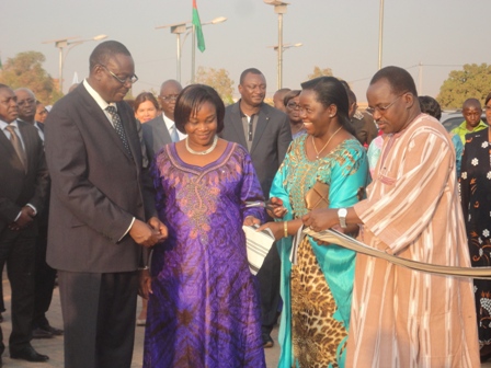 La représentante de la marraine, Christine Tiao, a procédé conjointement avec le ministre de la culture, celui de l’agriculture et de la sécurité alimentaire et la présidente de la cérémonie le ministre de la promotion de la femme, Nestorine Sangaré, à la coupure du ruban qui a donné le top départ des visites de stands et du même coup l’ouverture officielle de la SNAC.