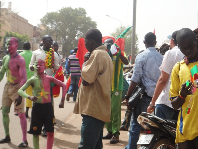 Ouagadougou, une ville toute en couleur. Rouge, vert et jaune. Une ville toute bruyante, plus que d’habitude, au son des sifflets, des vuvuzela et des klaxons. C’est l’ambiance qui règne dans la ville en ce jour de match des Étalons pour le compte des demi-finales, un match qui nourrit les espoirs des Burkinabè.