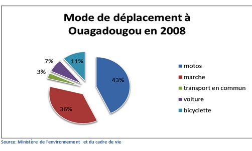 Le secteur du transport au Burkina Faso est en plein essor. Il est caractérisé par une pluralité des modes de déplacement notamment la marche à pied, les vélos, les motos, les voitures particulières, les taxis, et le transport en commun. Mais les habitudes assez ancrées de déplacement en voitures et surtout à motos, font peser des menaces sur l’environnement et sur la santé.