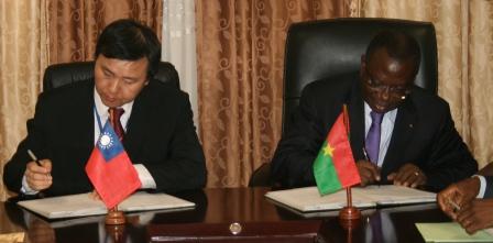 L’octroi de cette subvention s’est matérialisé à travers la signature par le nouvel ambassadeur de Taïwan Shen Cheng-Hong et le ministre de l’économie et des finances Lucien M. N. Bembamba, d’un accord de financement le mercredi 22 mai 2013 à Ouagadougou.