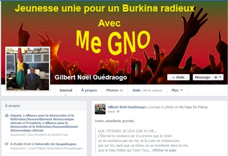 Ces questions ne se posent pas pour d’autres internautes politiciens dont le plus visible et le plus actif sur Facebook demeure le député-maire de Ouahigouya, Gilbert N. Ouédraogo de l’ADF/RDA. Il a atteint le seuil limite de 5 000 amis sur ses deux profils et compte plus de 3 000 abonnés à son fil d’actualité. Ayant pris goût à la chose du Net depuis son passage à la tête du ministère de l’Economie numérique, GNO (comme on l’appelle dans son parti l’ADF/RDA) a définitivement fait de Facebook un outil de communication à part entière, dont il use sans modération et avec stratégie.