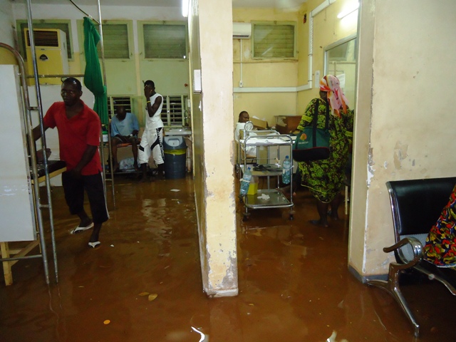 Le plus grand hôpital public du Burkina et le plus fréquenté, le Centre hospitalier universitaire Yalgado Ouédraogo (CHU-YO), était sous les eaux dans la soirée du lundi 30 septembre 2013 après une pluie diluvienne. Même si aucune victime humaine n’a été signalée, les malades, eux, ont passé un quart d’heure … mouillé.