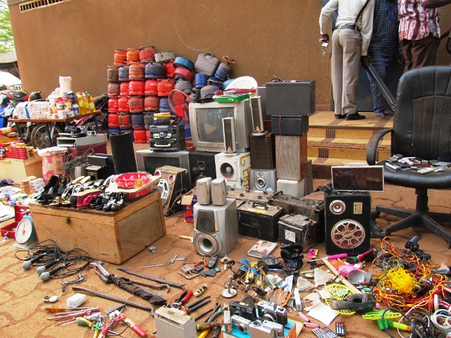 Le commissariat central de police de la ville de Ouagadougou a conduit une enquête depuis le 11 février 2014 à l’issue de laquelle, un groupe de délinquants a été mis aux arrêts. Les présumés brigands n’avaient pas de cibles particulières, ils emportaient tout sur leur passage. A la présentation du butin, on aurait cru à un déménagement familial, mieux, commercial. La présentation a été faite au cours d’une conférence de presse le 25 février 2014 à Ouagadougou par le commissaire adjoint, Bonswindé Sankara.