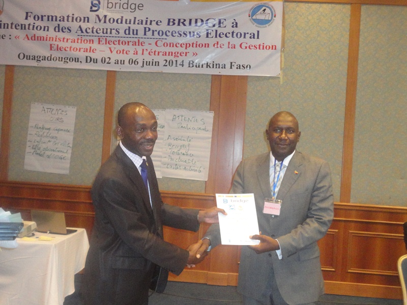 La formation modulaire BRIDGE organisée par la Commission électorale nationale indépendante (CENI), a réuni des représentants d’organisations de la société civile (OSC), de partis et formations politiques, du conseil supérieur de la communication, du conseil constitutionnel, du conseil d’Etat, de la CENI et l’Union Africaine. Elle a duré du 2 au 06 juin 2014 à Ouagadougou. A la clôture, les participants ont témoigné des acquis engrangés.