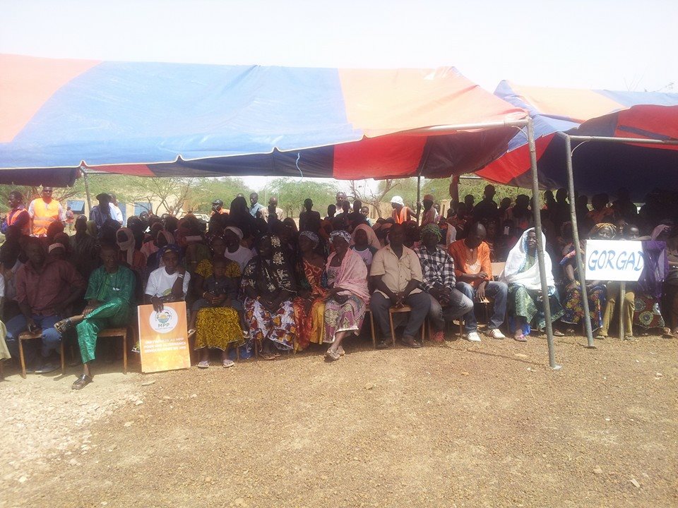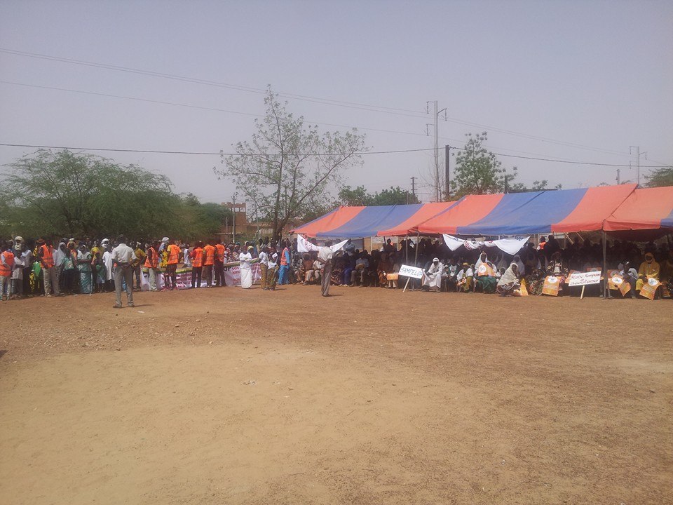* Messages exprimés sur les banderoles et pancartes. Les discours des officiels sont traduits en fulfuldé pour que tout le monde comprenne de quoi il est question.