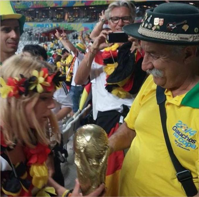 Mais contre toute attente, à la fin du match, l’homme a remis sa coupe à une supportrice allemande, avec ces mots : « Emmenez cette coupe à la Finale ! Ce n’est pas facile de la laisser, mais vous le méritez. Félicitations ! »