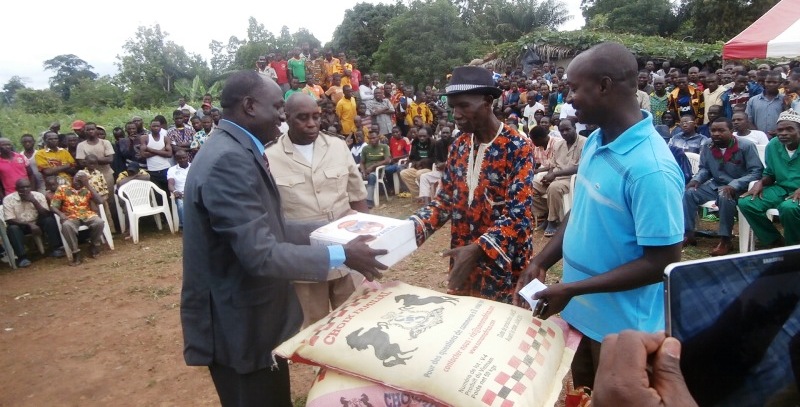 Avant de quitter les lieux, Justin Koutaba a offert 10 tonnes de riz, du lait et de l’huile, aux occupants du mont Peko.