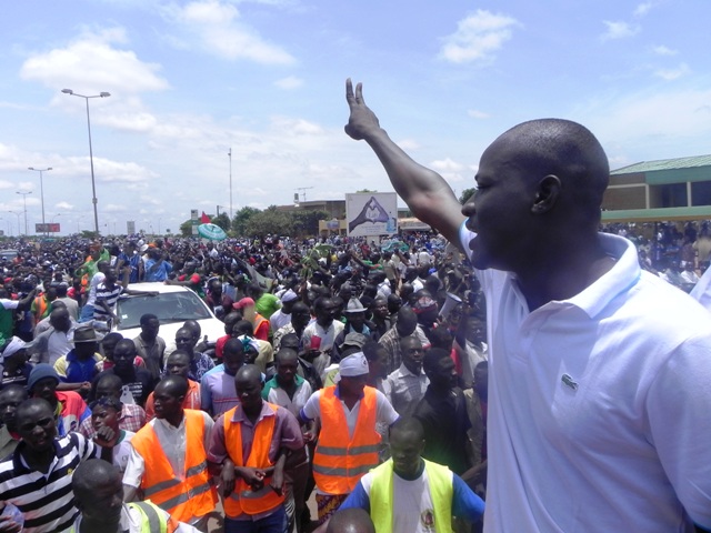 Arrivée de Zéphirin Diabré sous les ovations des manifestants.