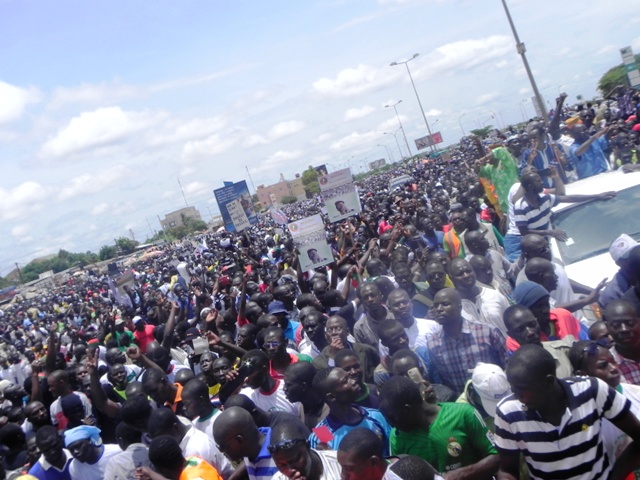 Le Chef de file de l’opposition a réitéré son refus du référendum et remercié les marcheurs pour « la mobilisation gigantesque ! ». Les chefs de partis politiques ont remercié les commerçants qui ont bien accepté céder le terrain vague proche du rond point de la Patte d’Oie pour la tenue du meeting.