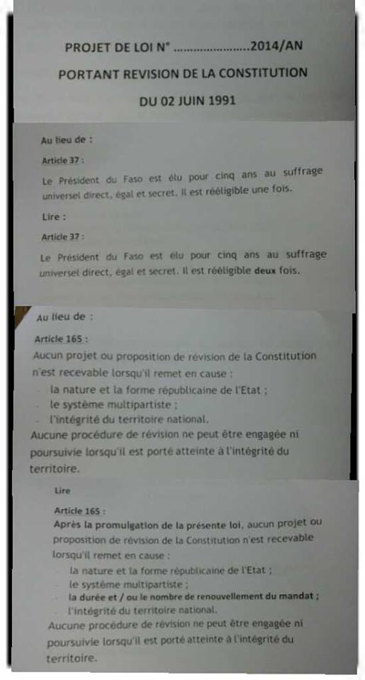 Messieurs les d?put?s de la majorit?, monsieur le premier ministre, monsieur le pr?sident de l?assembl?e nationale, vous ?tes le miroir et le r?pondant du pouvoir du pr?sident Blaise Compaor?, en modifiant l?article 37 par la pression ? violer la limitation du mandat pr?sidentiel rendu obligatoire par la constitution de 1991, votre manipulation ?tablira votre volont? de mettre le feu au pays que nous aimons tous, et souhaite son d?veloppement par l?alternance politique et ?conomique qui est la base de l??mergences d?un pays qui attend un chiffre de taux de croissance pour l?avenir de sa jeunesse. La communaut? internationale, l?UA, la communaut? Europ?enne, sont t?moins de vos actes criminel qui est de modifier un article de loi pour l?int?r?t d?un seul individu et non de ce qui est mieux pour une nation et son peuple. Vous mettez mal ? l?aise a tous nos valeureux juristes et magistrats qui ont ?uvr?s pour cr?er des institutions qui prot?ges le peuple. Dans les mois ? venir vous serez comptable des crimes qui vont suivre ? un soul?vement populaire. Ne croyez pas que ?a arrive seulement ailleurs et non au Burkina, le peuple Burkinab? de 2014 n?est pas celui de 1987, il est mur, et pr?t a laisser sa vie pour son int?r?t. Cette phrase a ?t? dit ? Mr. Laurent GBAGBO en 2011 dans un site d?information des r?seaux sociaux en ligne.