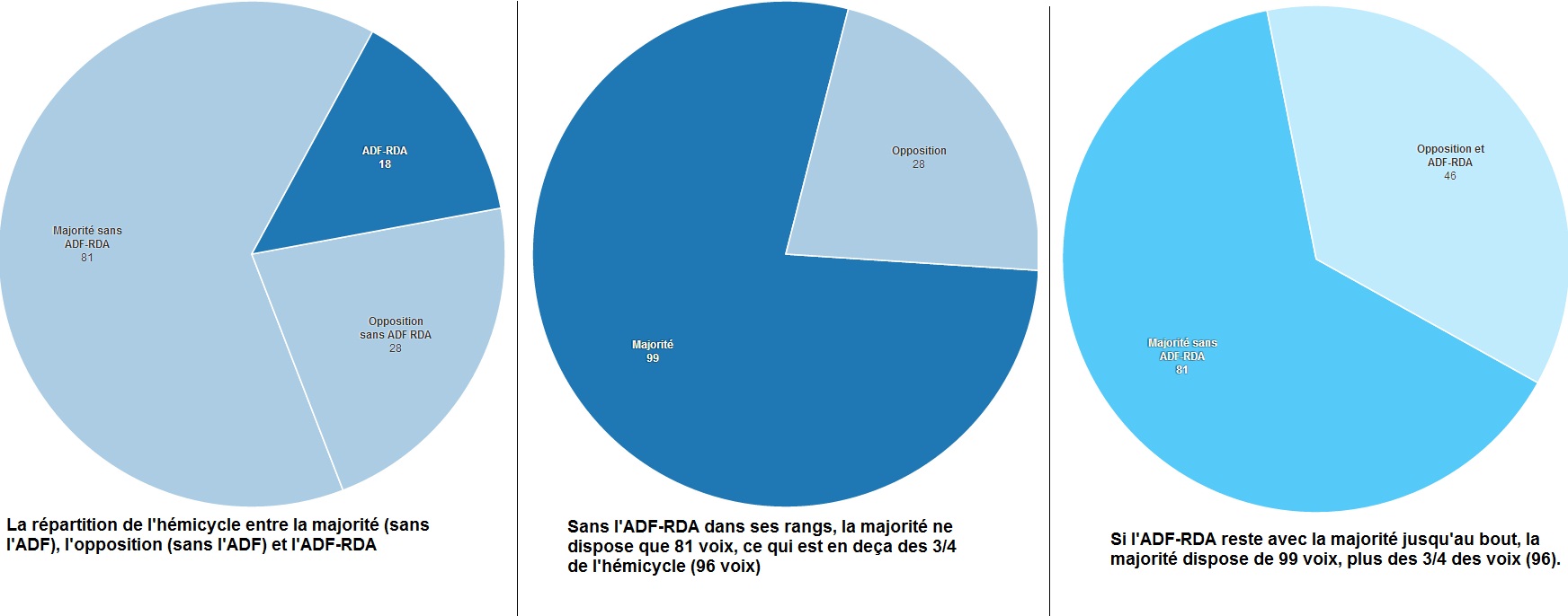Les groupes parlementaires Alternance-Démocratie et Justice (ADJ) et l’Union pour le progrès et le changement (UPC) ont exigé, à la Conférence des présidents convoquée par le président de l’Assemblée nationale (AN), Appolinaire Ouattara, un vote sur le projet d’ordre du jour. Ce vote a donné 99 voix pour et 28 voix contre. Ce qui laisse croire que le projet de loi pourrait recueillir le vote de la majorité qualifiée (96 députés) le 30 octobre prochain lors de la plénière. Le référendum ne serait plus alors nécessaire.