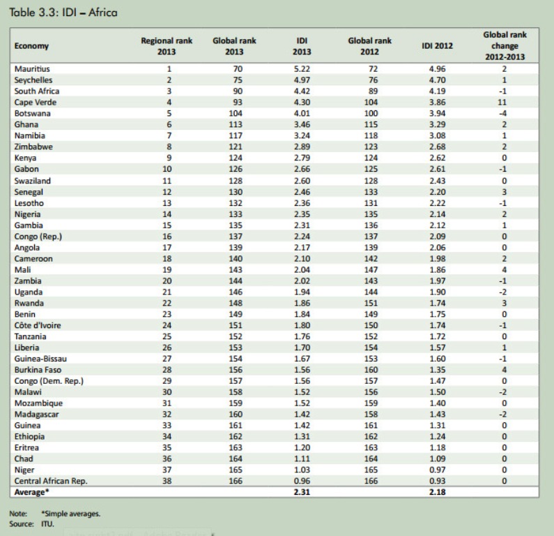 Ainsi, selon l’édition 2013 de ce rapport diffusé par « Afrique IT News », le continent africain occupe cependant les dernières places dans le classement mondial, même si certains pays moins médiatisés font sentir leur supériorité face à des nations autrement plus développées.