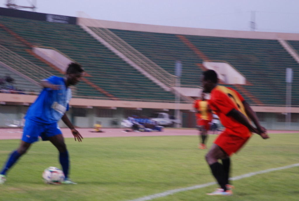 Les jaunes et verts n’ont pas laissé leurs adversaires mettre leur jeu en place en ouvrant le score dès la 8ème mn par Rachidou Aboubacar. Sur le plan offensif, les militaires ont du mal à trouver le cadre.