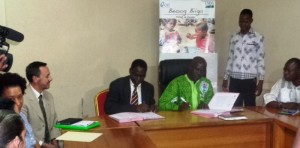 Le ministre de l’éducation nationale et de l’alphabétisation, Samadou Coulibaly et le représentant résident de l’Organisation non gouvernementale Catholic Relief Services Cathwell (CRS), Moussa Dominique Bangré, ont procédé ce mardi 12 mai 2015 à Ouagadougou, à la signature du protocole d’accord relatif à la mise en œuvre de la phase II du programme « Béoog Biiga ».