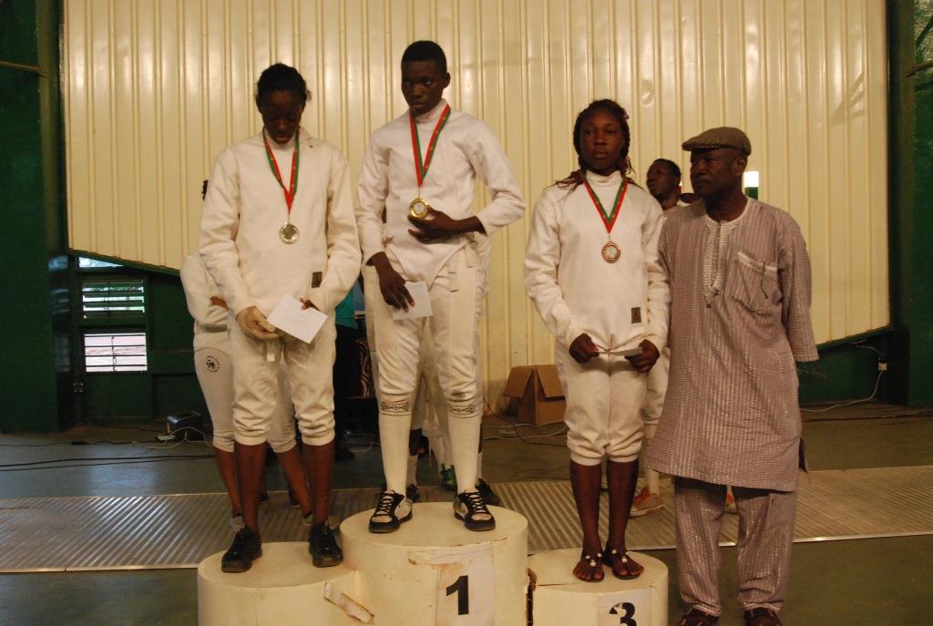 Chez les dames, Maria Ouattara de Diébougou a dominé Rachidatou Sawadogo au sabre en finale et Safiatou Korbéogo de Ouagadougou au fleuret. La 3ème place en sabre est revenue à Karida Zaba de Ouagadougou. La 3ème place au sabre est occupée par Karida Zaba de Kaya et au fleuret par Alexies Sawadogo.