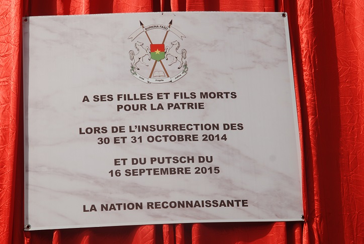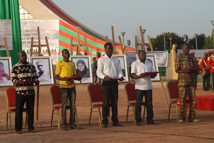 Les 42 martyrs de l’insurrection populaire des 30 et 31 octobre 2014 et de la résistance populaire contre le putsch du 16 septembre 2015 ont été élevés ce 31 octobre 2015 au rang de Chevaliers de l’ordre national à titre posthume, à l’occasion de la première cérémonie d’hommage aux martyrs. Une stèle a été inaugurée en leur mémoire.