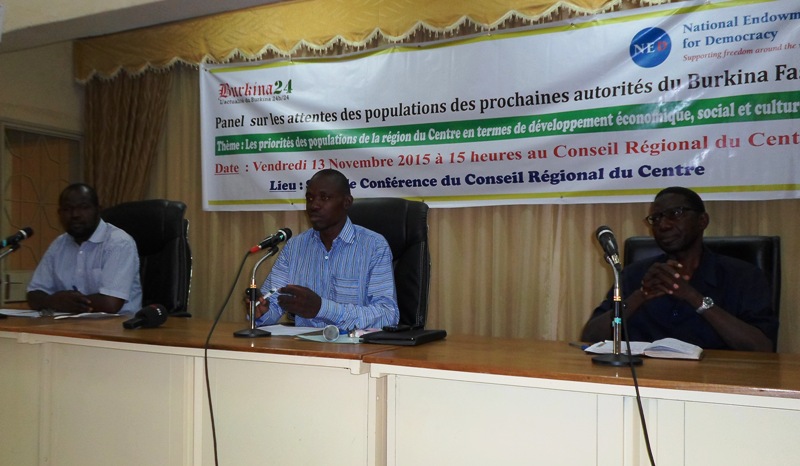 Burkina 24, en partenariat avec la NED (National Endowment for democracy), a organisé ce vendredi 13 novembre 2015 à Ouagadougou, un panel sur les attentes des populations des prochaines autorités du Burkina. La campagne électorale pour la présidentielle étant lancée depuis le 8 novembre dernier, les organisateurs de ce panel jugent nécessaire d’attirer l’attention des différents candidats en lice afin de les orienter dans leurs décisions à la tête de la chose publique.