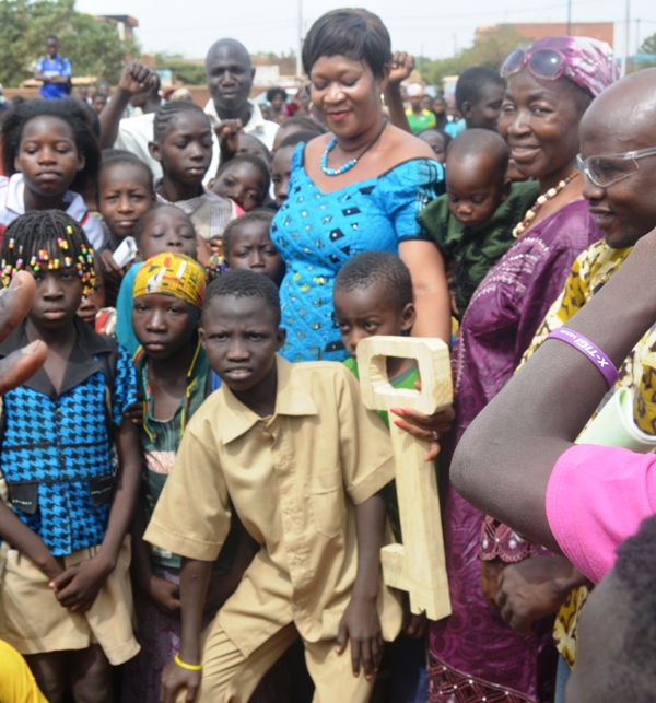Elle a reçu un cadeau symbolique représentant « la clé de Kossyam » remise par des élèves qui l’ont chargée de transmettre ladite clé à son époux. Wend-manegda et sa délégation sont également allées rendre visite aux différents chefs coutumiers de la localité.