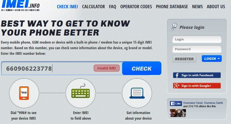 Rendez-vous sur le site IMEI Info en cliquant ici. Entrez le numéro IMEI. Si ce numéro est invalide, l’on n’aura même pas le temps de cliquer sur « Check » et le site en avertira aussitôt comme ci-dessous.