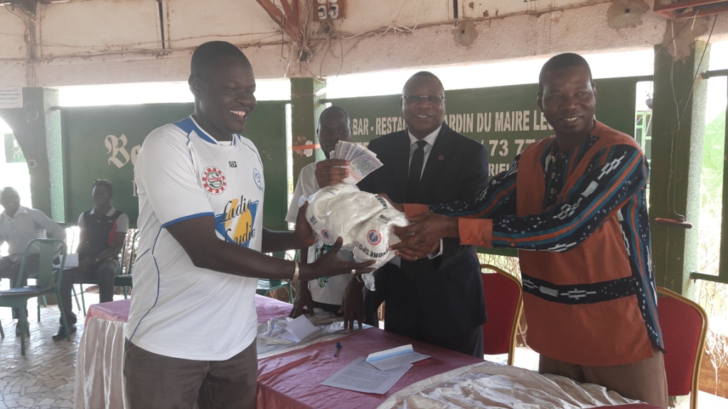 Alexandre Le Grand Rouamba, journaliste sportif et natif de la région du Centre-ouest, a remis trois cent mille F CFA plus six ballons pour les deux équipes au Bouloupoukou Sport de Koudougou (BPS) et à l’Association Sportive des Commerçants et Employés de Koudougou (ASEC-K), le samedi 27 février 2016 à Koudougou.