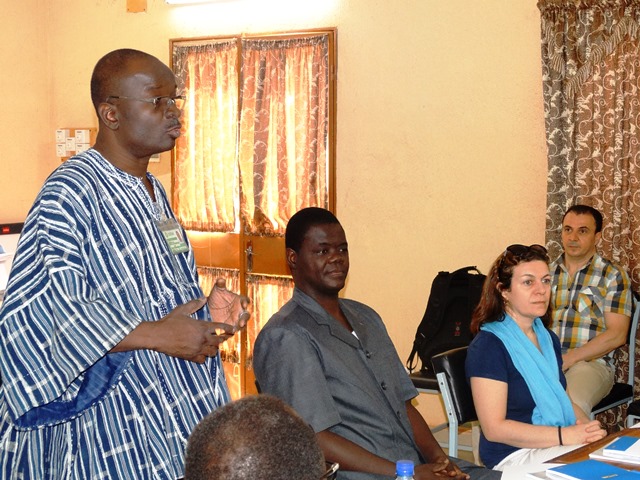 Tous les participants (SP CONASUR, en premier plan) suivant avec attention la projection de Thomas d'Aquin Yaméogo
