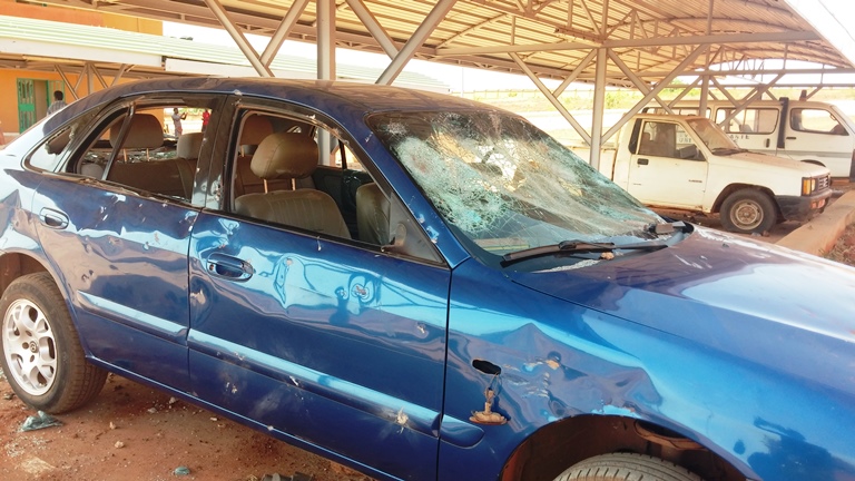C’est la voiture du directeur régional (et la moto de son chauffeur) qui récoltera les pots cassés. Elle a été totalement consumée. D’autres véhicules de certains responsables de l’administration ont été également caillassés.