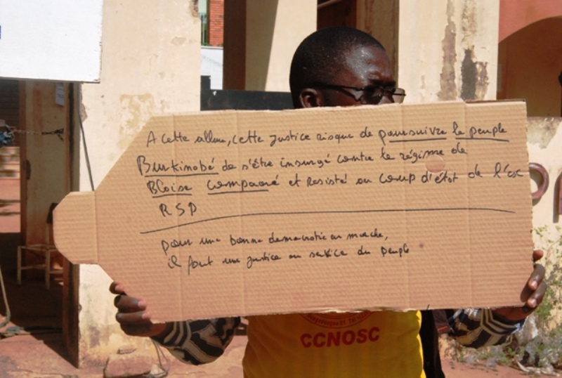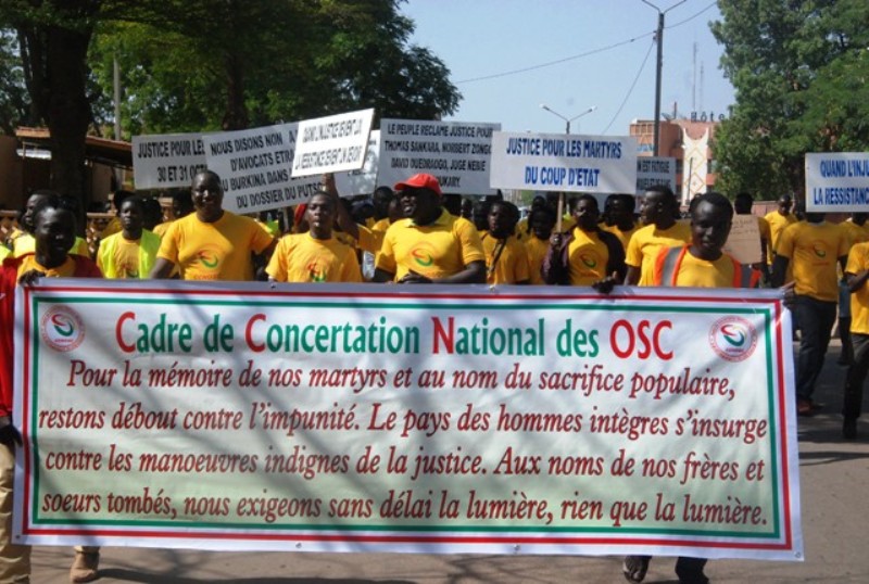 Le Cadre de concertation nationale des organisations de la société civile (CCNOSC) a tenu, ce jeudi 2 juin 2016 devant le Palais de justice à Ouagadougou, un sit-in de protestation contre les récentes libérations des responsables de l’ancien régime, arrêtés dans le cadre du putsch manqué et autres crimes économiques.