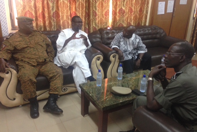 Le gouverneur Ousmane Traoré (en blanc) avec le ministre de la sécurité intérieure Simon Compaoré (droite) et les deux premiers responsables de la gendarmerie et de la police nationales.