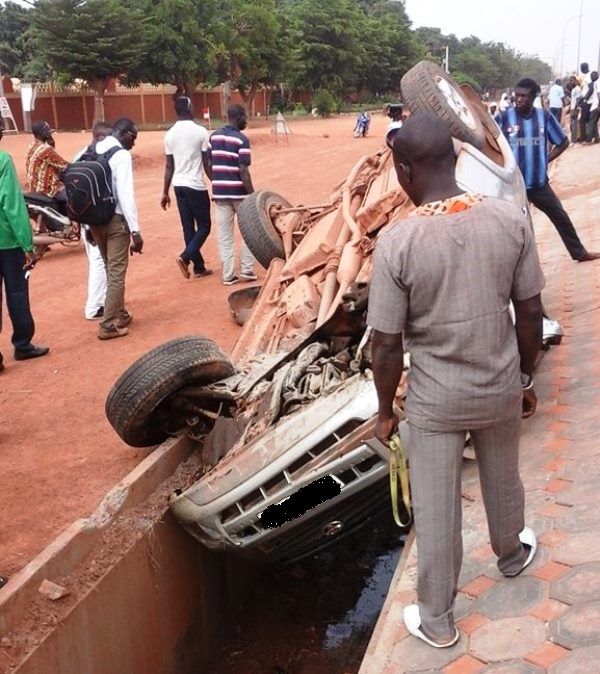 Dans la matinée de ce samedi 10 septembre 2016, un accident a eu lieu sur la Route nationale N°4 juste après l’échangeur en face de l’entrée principale du Bureau des mines et de la géologie du Burkina (BUMIGEB) à Ouagadougou. Heureusement, aucune perte en vie humaine n’est à déplorer.