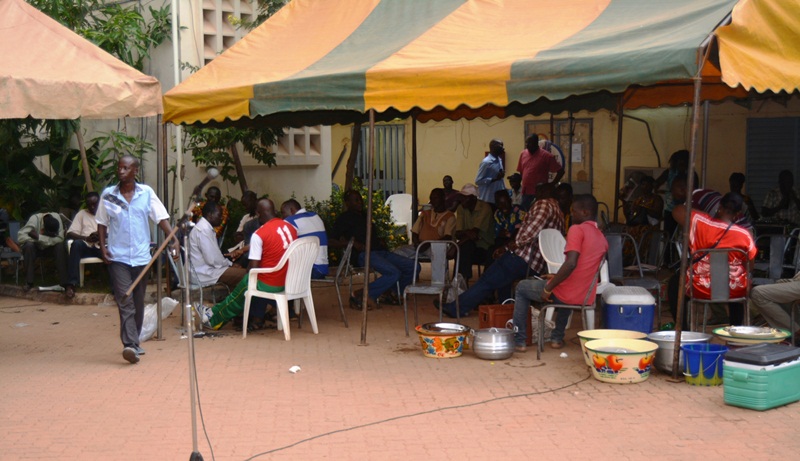 Les grévistes, assis tranquillement sous les tentes, qui autour des jeux de société, qui dissertant sur des sujets d’actualité avec des plats de riz gras arrosés de zoom-koom, matérialisent ce débrayage dans les locaux de Sidwaya où la musique dite engagée agresse les tympans.