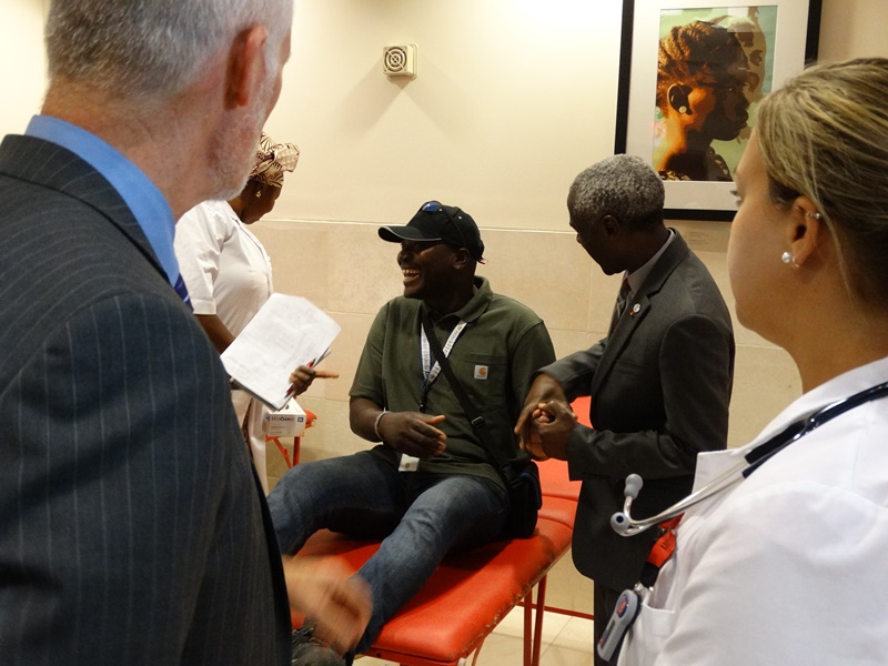 Tulinabo Mushingi a indiqué être « agréablement surpris » de voir tant de monde venu pour donner du sang. Son Premier conseiller David Young fait partie de ce monde-là. Mais en raison de son âge (61 ans), il n’a pas pu le faire au grand étonnement de l’ambassadeur. Il explique : « Mon premier conseiller a offert de donner du sang, mais nous avons appris qu’à l’âge de 61 ans, peut-être, ce n’est pas possible. Pourtant, nous nous pensons qu’il est encore jeune. En fait son nom c’est Young. Ce qui veut dire jeune ».
