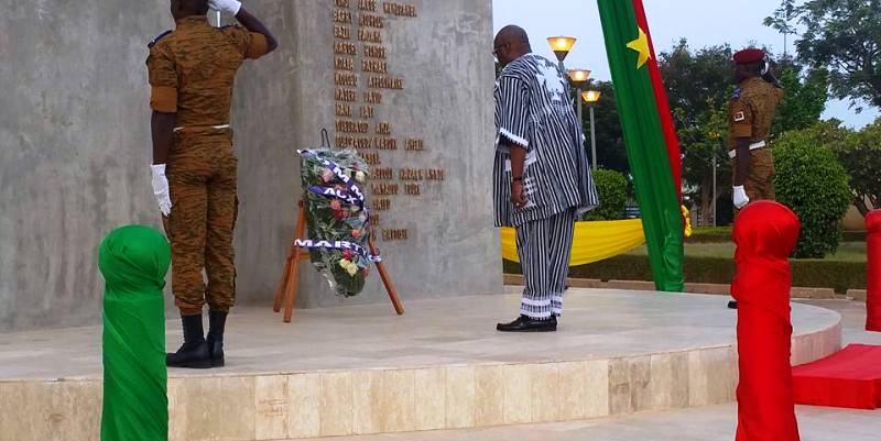 Le cérémonial au mémorial des héros nationaux à Ouaga 2000 a été marqué par des prières religieuses (Communautés musulmane, catholique et protestante), l’intervention du représentant des familles de victimes, Babou Nébon Bamouni, suivie de « l’hymne de la démocratie » prononcé par un groupe de jeunes, « les chantres de la paix ».