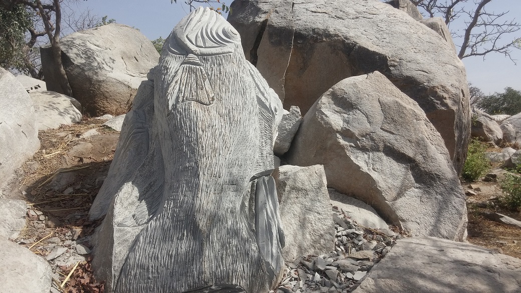 Blandine Ouédraogo, l’une des femmes ayant pris part au symposium, posant à côté de son « aigle royal » en pierre, a fait part des conditions et du processus du travail. « Quand on arrive sur le site, chacun choisit sa pierre en fonction de son idée. Au début, je ne voulais pas faire l’aigle mais quand j’ai vu cette pierre, ça m’a inspirée », dit-elle.