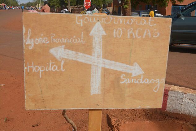 Une pancarte de signalisation pour guider les invités de la ville à Kaya