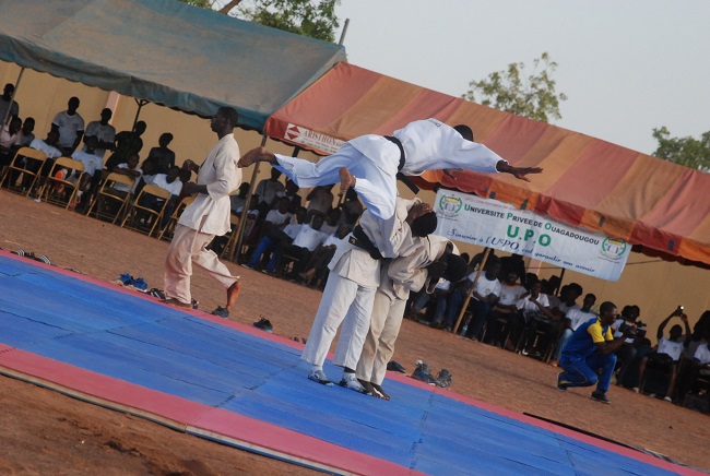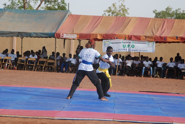 A l’Université Ouaga I Joseph Ki Zerbo, il existe des clubs d’arts martiaux de kung fu et judo. Les pensionnaires de l’Université Club de Ouagadougou (UCO) l’ont prouvé à travers une démonstration de leurs talents en présence du ministre des sports et des loisirs Taïrou Bangré. Malgré les moyens modestes, ces athlètes ont démontré leur savoir-faire à l’occasion du lancement de la saison sportive des compétitions de l’Union des sports scolaires et universitaires du Burkina Faso (USSU-BF) le jeudi 27 avril 2017.